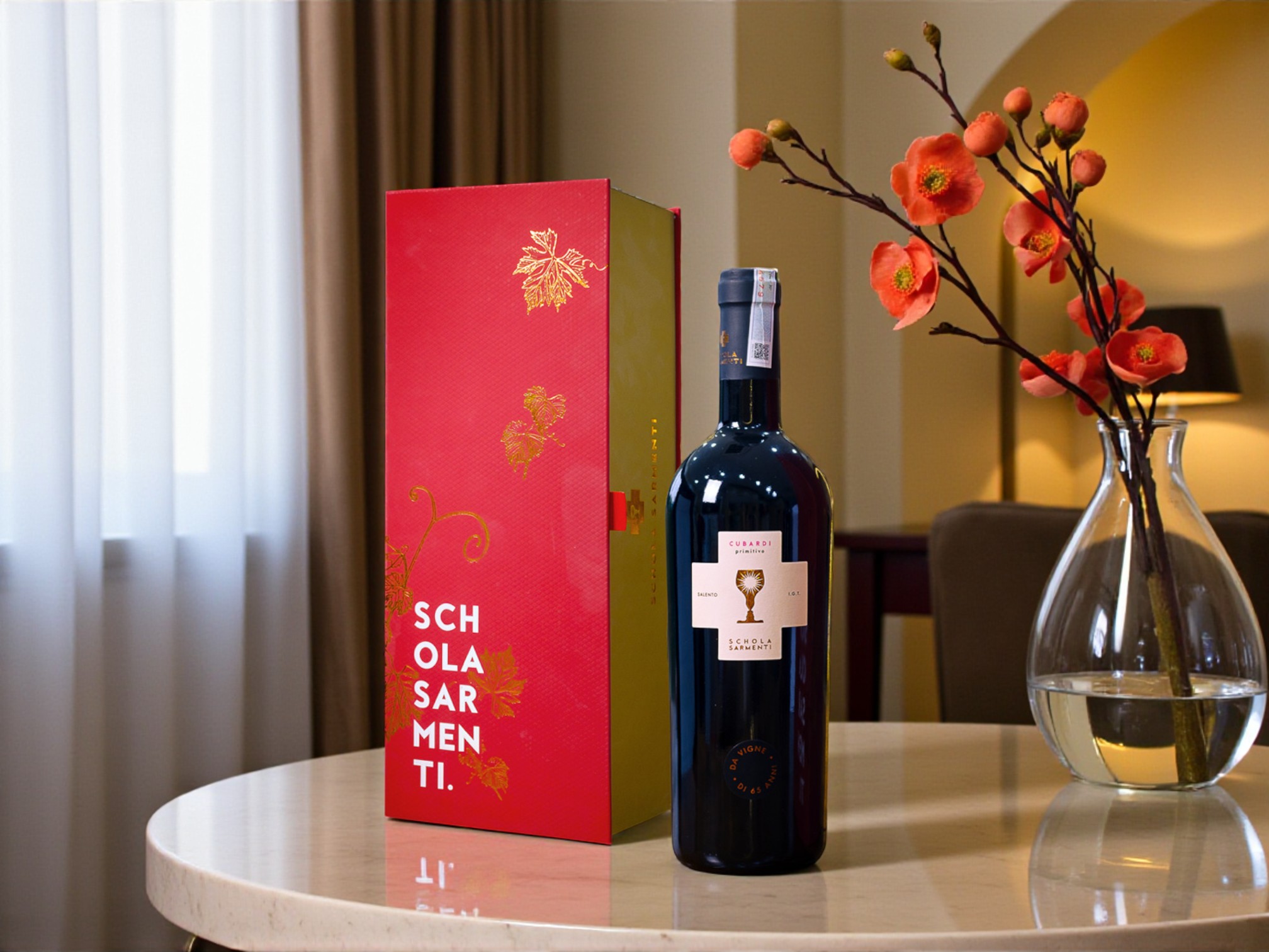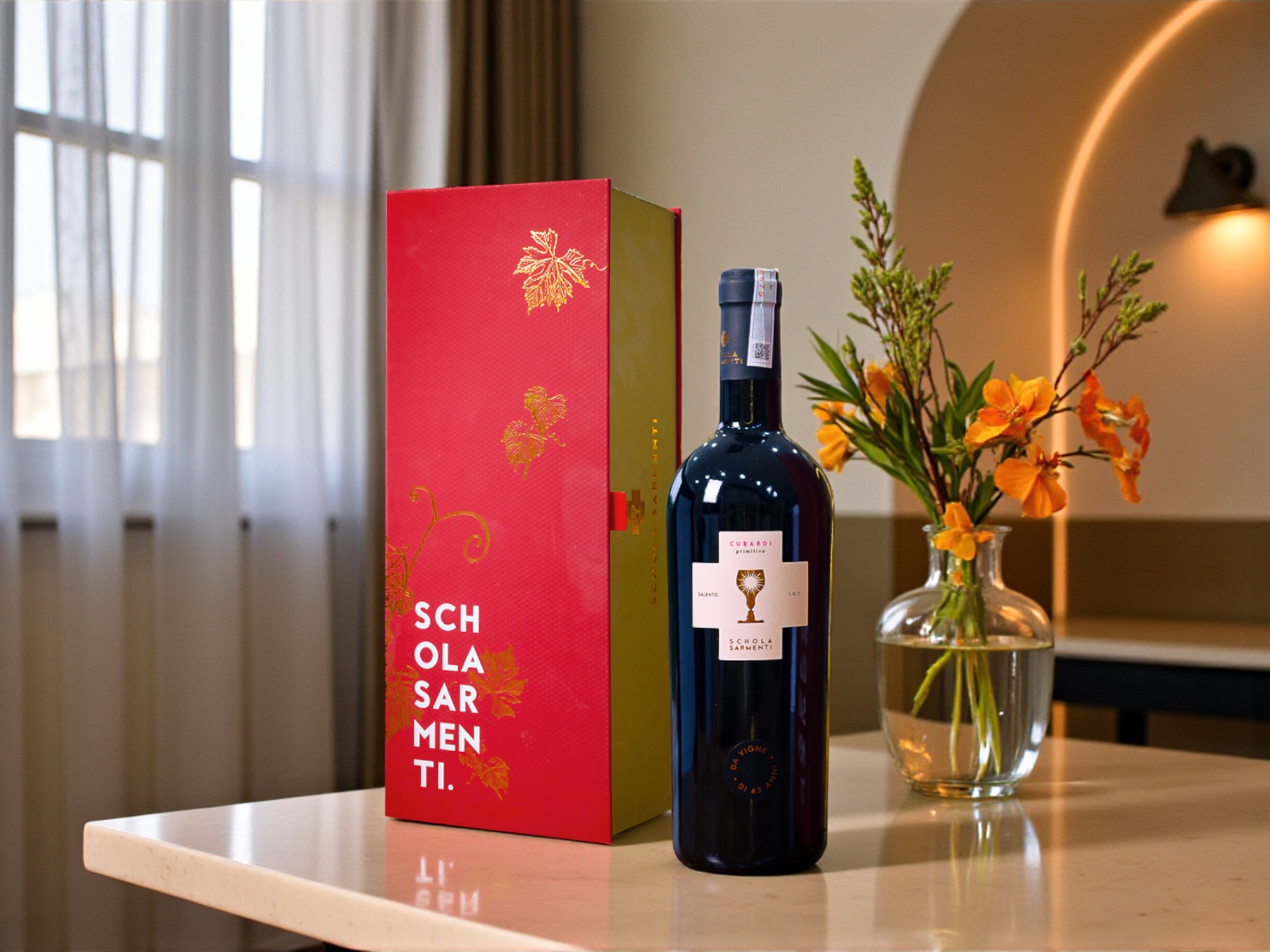 Bộ quà tặng Schola Sarmenti Cubardi đặc biệt nhờ sự kết hợp giữa thiết kế hộp quà thẩm mỹ cao và chất lượng rượu vang thuần vị Ý từ giống nho Primitivo lâu năm. Đây là set quà hội tụ cả giá trị nghệ thuật và giá trị thưởng thức, rất phù hợp trong những dịp quan trọng.