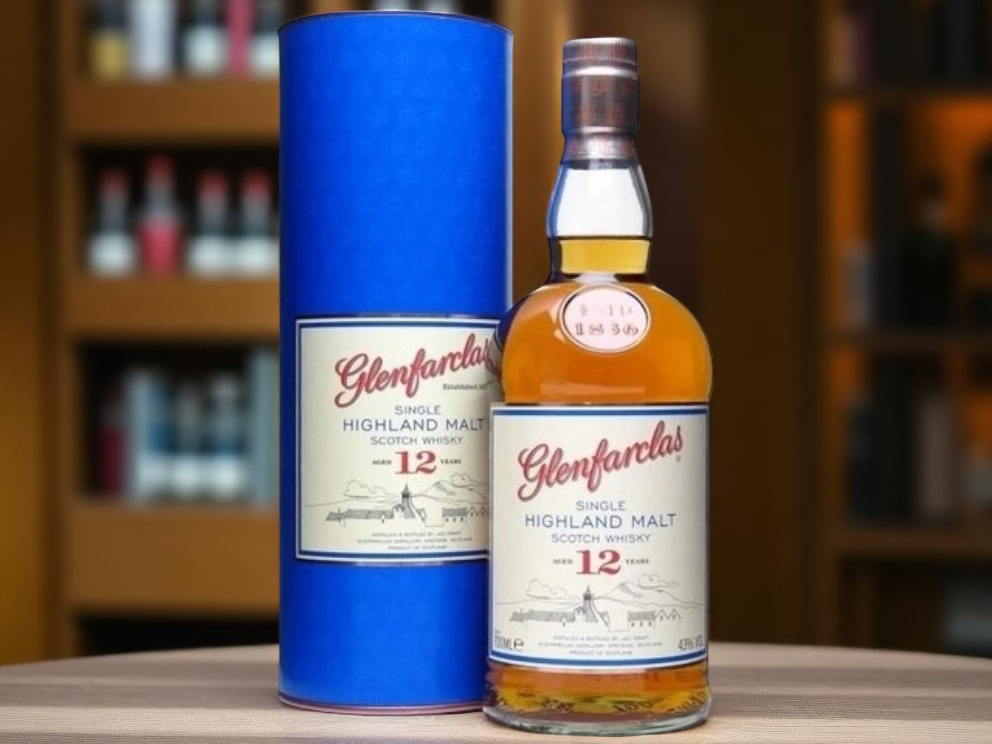 Glenfarclas 12 được đóng trong chai thủy tinh cổ điển, nắp đồng và nhãn in tay sang trọng. Hộp giấy cứng màu xanh dương viền vàng sang trọng, phù hợp làm quà biếu cho doanh nhân, sếp, đối tác hoặc dịp lễ tết.