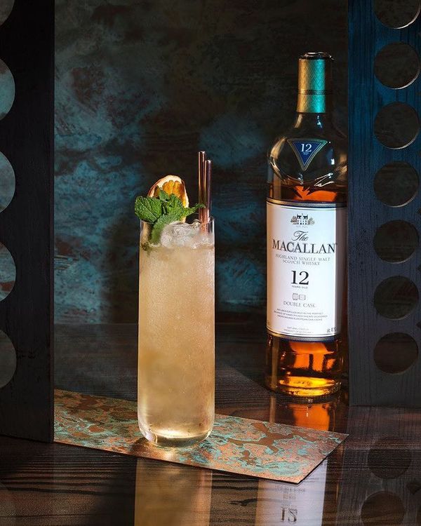 - Nguyên liệu: 45ml rượu Macallan 12, 120ml soda, 1 lát chanh, đá.