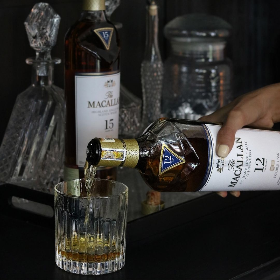- Cách pha: Rót 45ml Macallan 12 vào ly, thêm vài viên đá lớn và khuấy nhẹ nhàng.