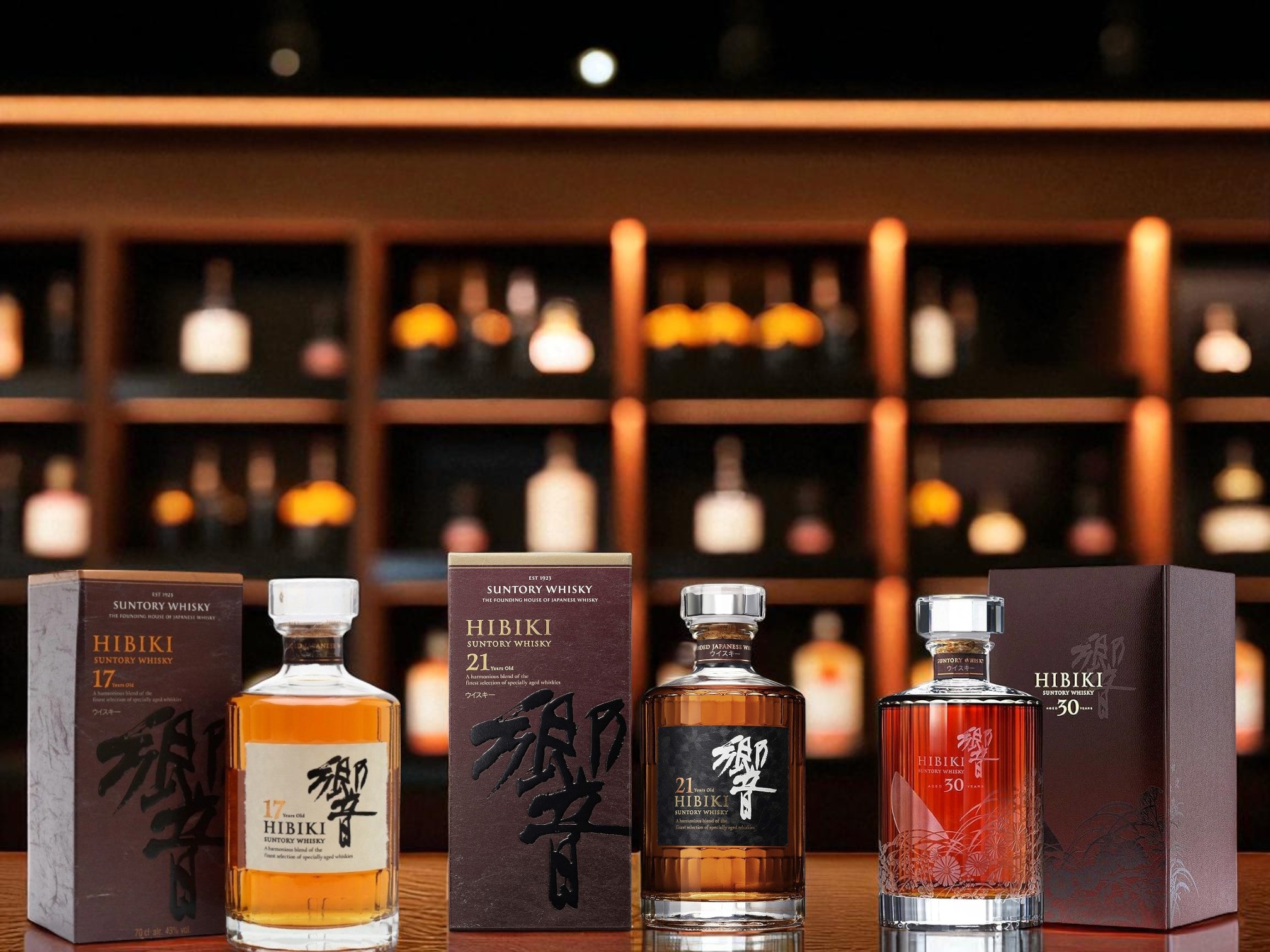 Hibiki 17, 21, 30 năm – mượt mà, tròn vị, nhiều tầng lớp hương vị.