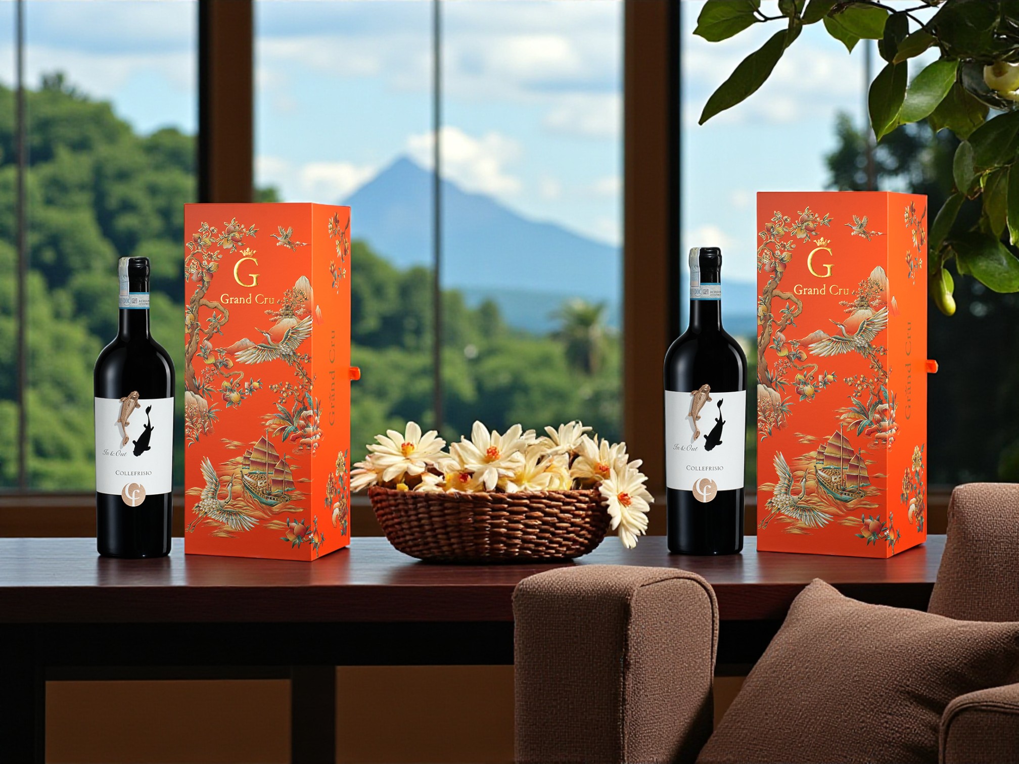 Điểm đặc biệt của hộp quà này đến từ sự kết hợp khéo léo giữa văn hóa truyền thống phương Đông và tinh hoa rượu vang phương Tây: