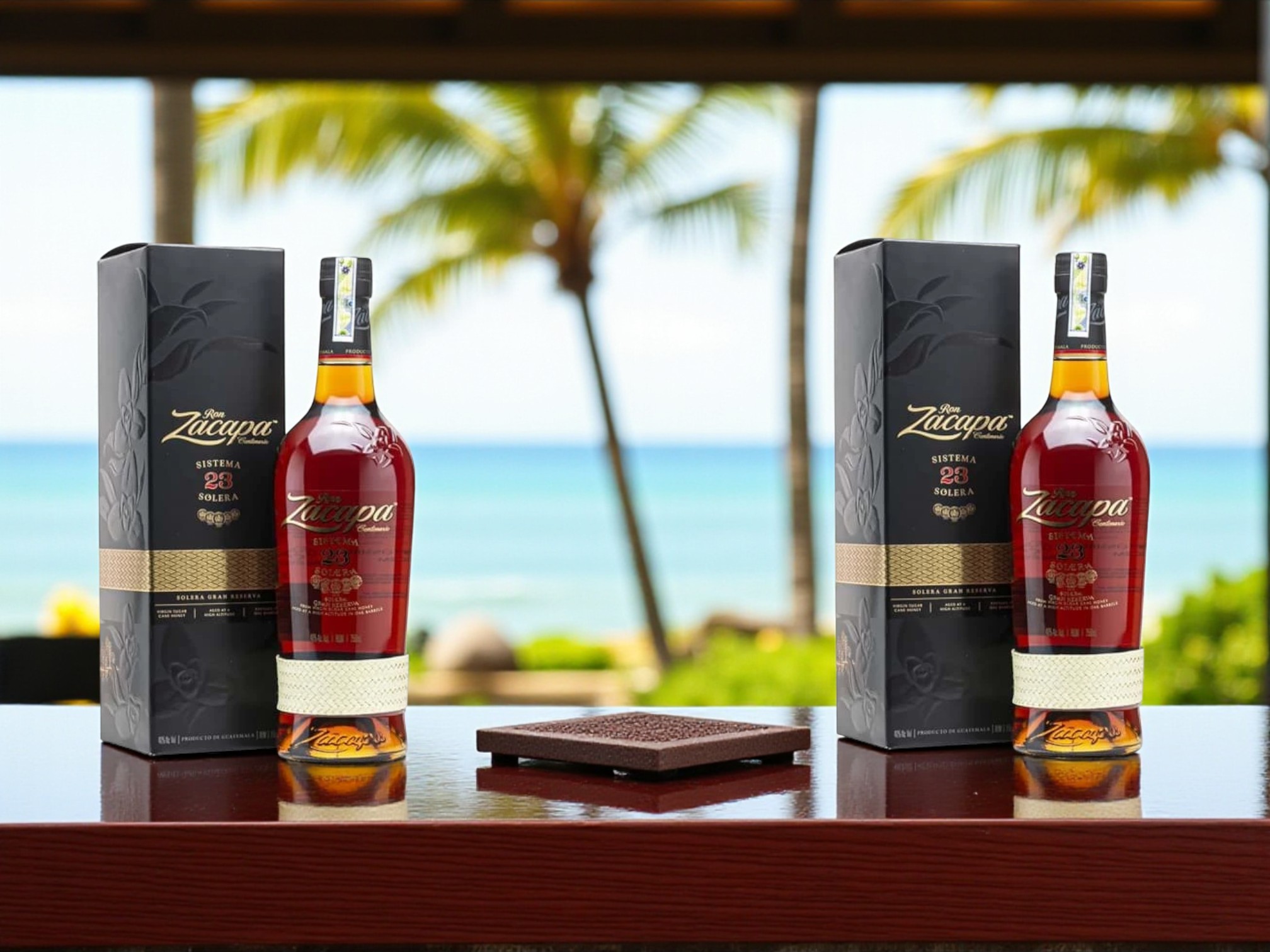 Rum Zacapa 23 không chỉ có hương vị tuyệt hảo mà còn sở hữu thiết kế sang trọng, tinh xảo. Chai rượu được trang trí bằng dải bện “petate” thủ công – biểu tượng văn hóa của người Maya, tượng trưng cho sự gắn kết giữa đất trời và con người.