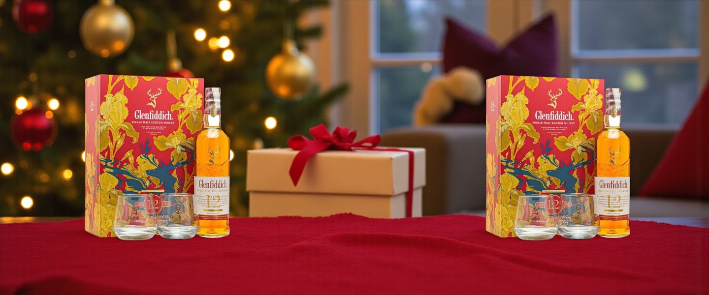 • Phiên bản hộp quà Tết 2026: Bao gồm 1 chai Glenfiddich 12 Sherry Cask + 2 ly whisky sang trọng