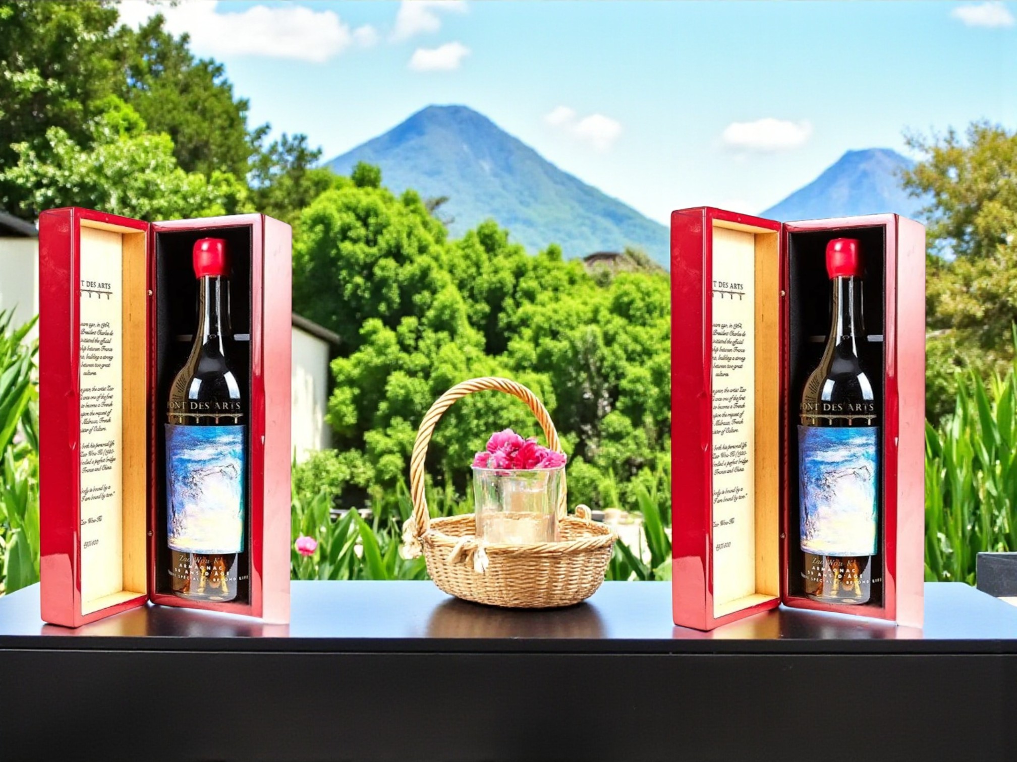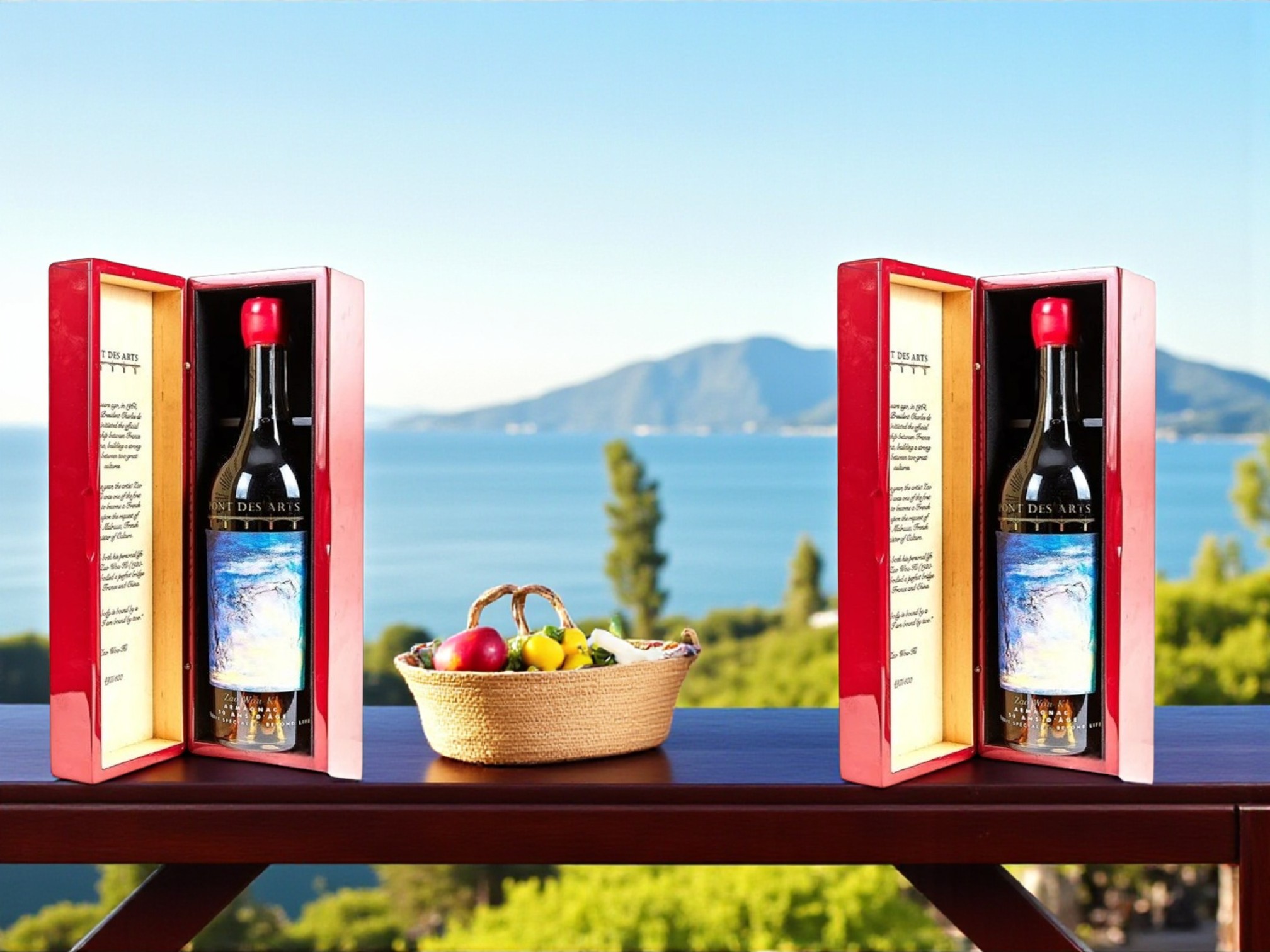 Hộp gỗ đỏ bóng loáng kết hợp cùng nhãn tranh nghệ thuật khiến sản phẩm trở thành quà tặng nghệ thuật độc bản, khác biệt hoàn toàn với các dòng Armagnac thông thường.