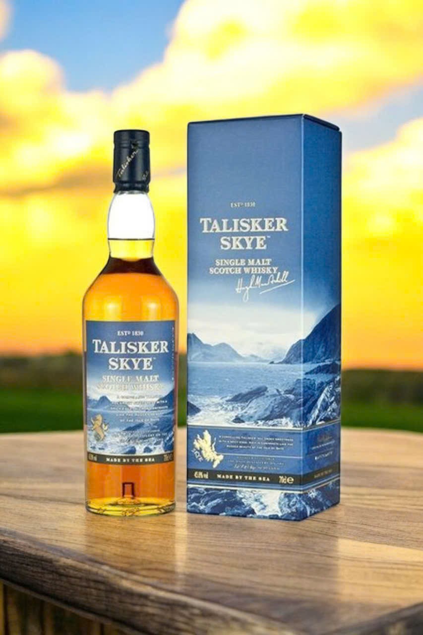 Talisker Skye là dòng whisky single malt được chưng cất tại nhà máy Talisker Distillery – nhà máy duy nhất nằm trên đảo Skye thuộc vùng Tây Bắc Scotland. Đây là dòng rượu được giới thiệu để tôn vinh vẻ đẹp tự nhiên và dữ dội của hòn đảo này, với phong cách mặn mòi, khói nhẹ, xen lẫn vị ngọt dịu và cay nồng đặc trưng.