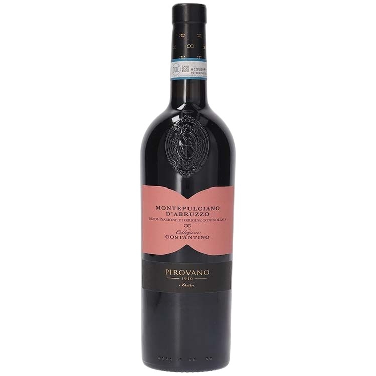 Pirovano Montepulciano d’Abruzzo Costantino gây ấn tượng với thiết kế chai cổ điển, nhãn hồng nhạt thanh lịch kết hợp logo nổi của hãng Pirovano 1910 ở phần thân trên – biểu tượng của hơn 100 năm truyền thống vang Ý.