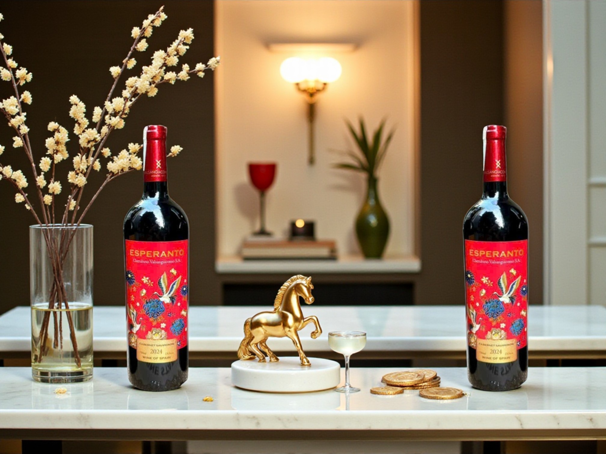 Dòng vang Esperanto nổi bật nhờ phong cách thiết kế đỏ lễ hội, hình chim én tượng trưng cho tài lộc và bình an. Với ý nghĩa phong thủy và dấu ấn văn hóa mạnh, chai vang này trở thành lựa chọn lý tưởng cho mùa Tết và các dịp biếu tặng quan trọng.