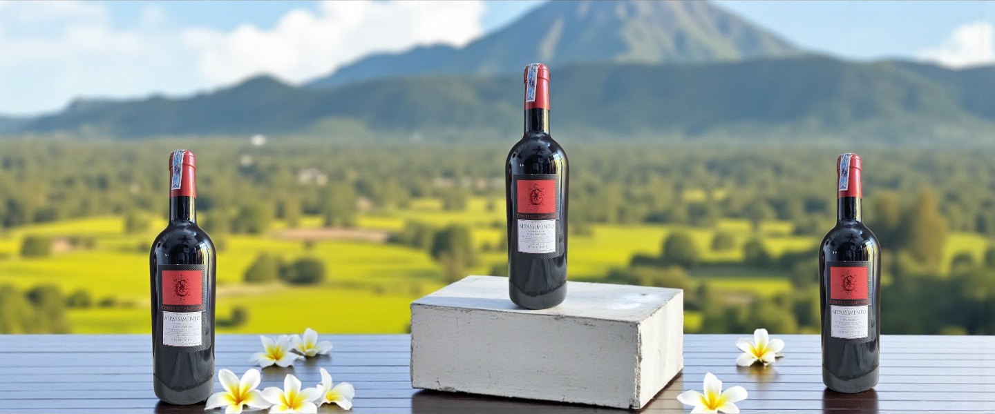 Appassimento Negroamaro: có hậu vị ngọt nhẹ, đậm hương trái cây khô, vị tannin mượt – phù hợp người thích vang “ngọt quyến rũ”.