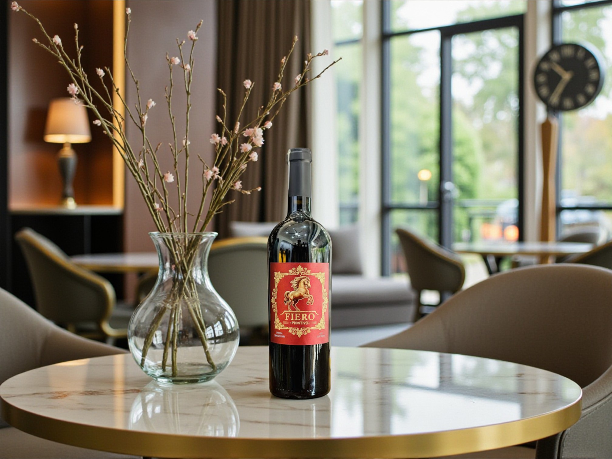 Thiết kế chai rượu vang Ý Fiero Primitivo 2024 là một điểm cộng lớn, đặc biệt với khách hàng mua rượu để biếu tặng. Nhãn chai màu đỏ nổi bật, kết hợp hình chiến mã vàng ánh kim tạo cảm giác mạnh mẽ, sang trọng và mang ý nghĩa phong thủy tốt.
