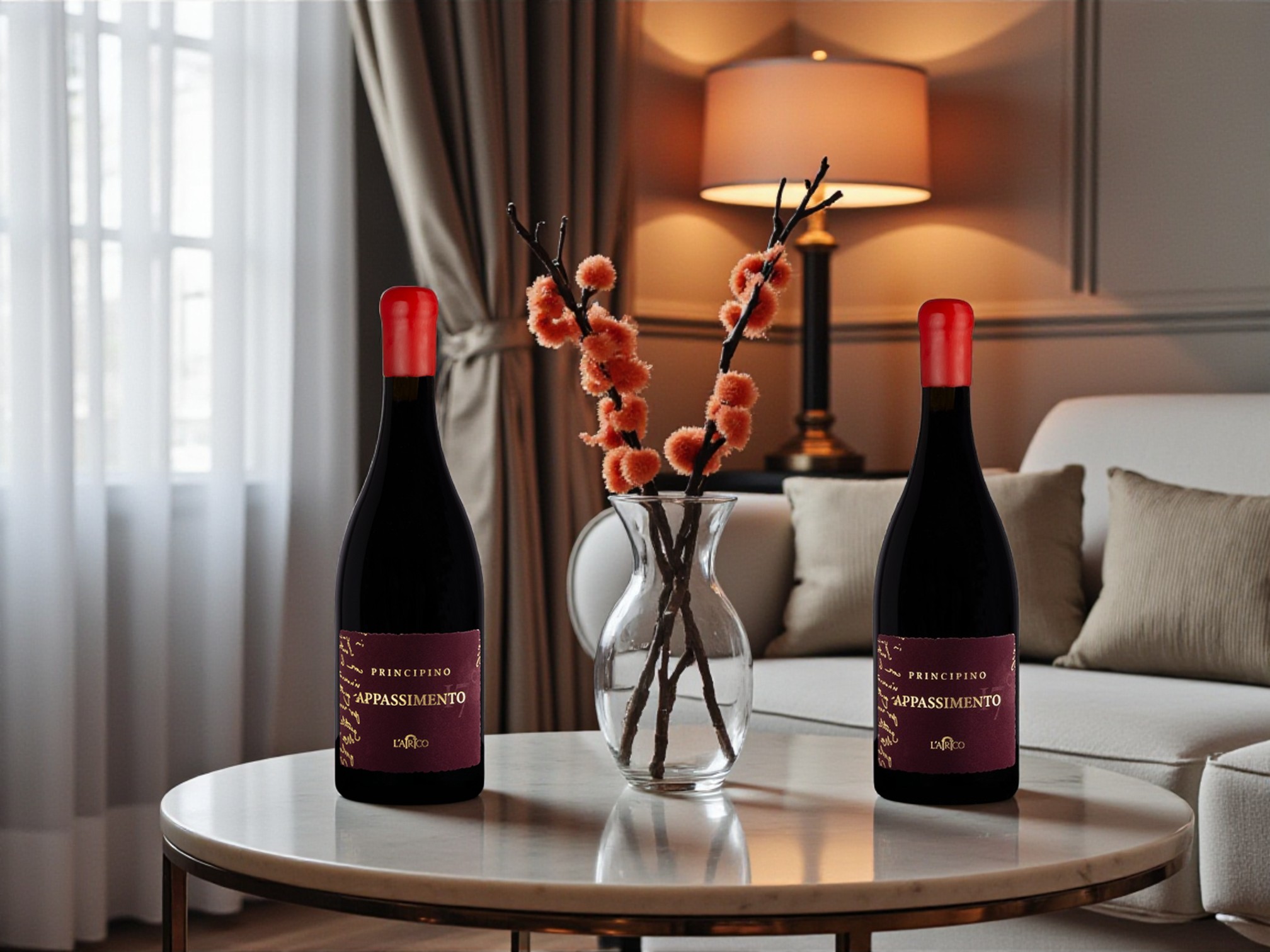 Thiết kế của chai Principino Appassimento cũng rất đặc trưng với nắp sáp đỏ nổi bật, tạo cảm giác thủ công sang trọng.