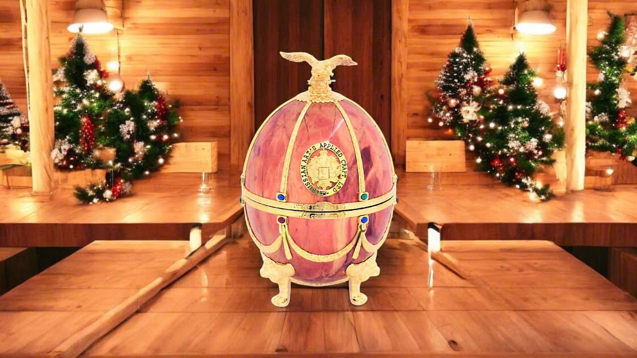 Trên thân trứng là các viên đá mô phỏng ruby, sapphire, emerald… được đính thủ công, thể hiện độ tinh xảo đến từng chi tiết. Nắp trứng được điểm xuyết bằng biểu tượng đại bàng hai đầu – biểu trưng của đế chế Nga hoàng, khẳng định khí chất hoàng gia.